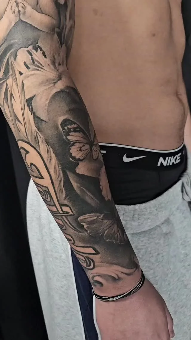 Karen’s work is illustrative neo traditional, specializing in black and gray or black work. She generally works with large pieces which include a variety of subject matter. Also very versatile as an artist, so if you have something else in mind don’t hesitate to reach out and ask!